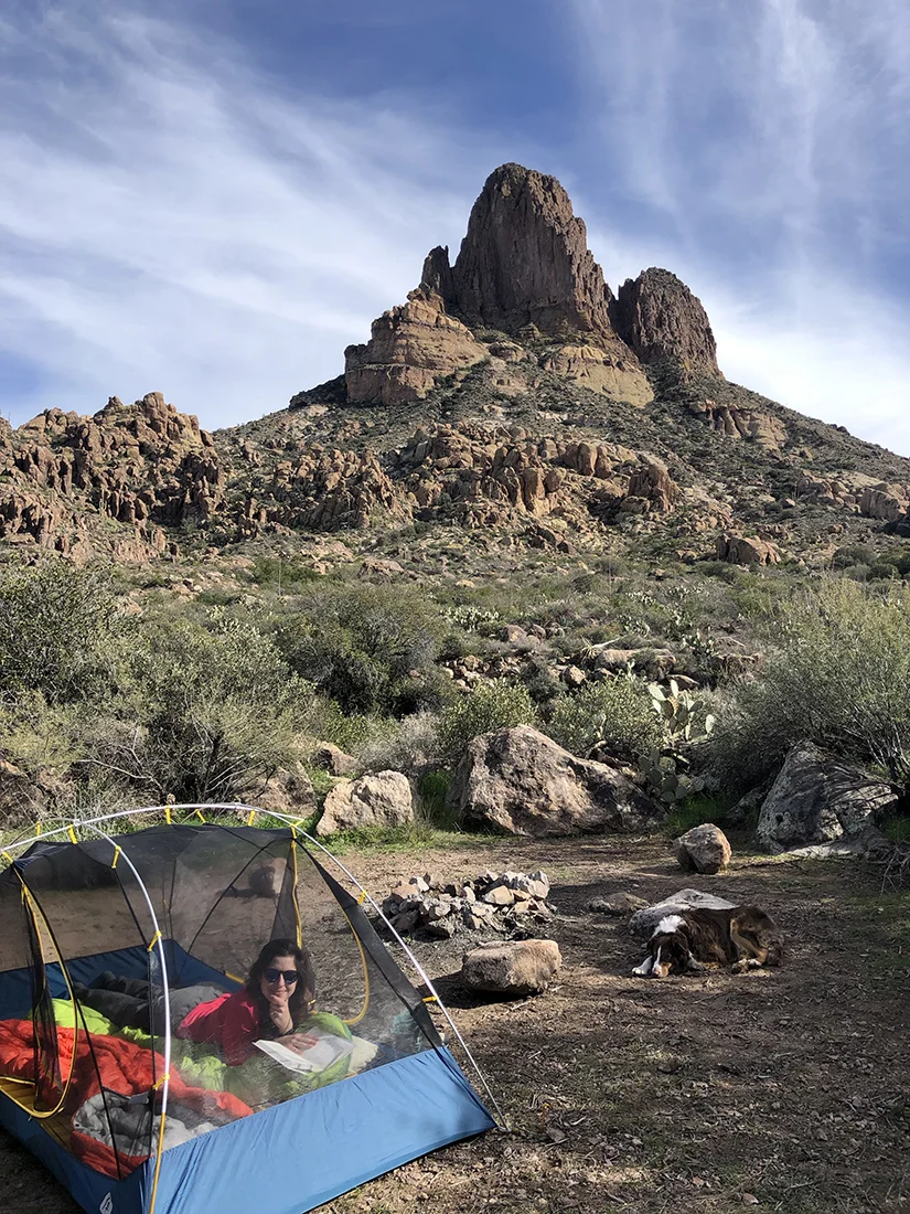 Grant had been talking about a backpacking trip in southern Arizona for some time. When I eventually heard the name of the mountain range was the Superstition Mountains I was in. The Superstitions are located outside of Phoenix offering multiple hiking trails mere minutes from the city. We spent two days backpacking and soaking in the views trying avoid getting attacked by a cactus. The first night, we slept on a ridge overlooking Weavers Needle. Fortunately, we didn’t blow away with the strong winds. We continued to hike into the valley and found the perfect grassy camp spot among the desert thorns. We spent the day reading and admiring the features of Weavers Needle. Lhotse, of course, loves anytime spent in the mountains carrying his little pack. The nights were cold and the days were hot but we throughly enjoyed exploring the Superstitions.